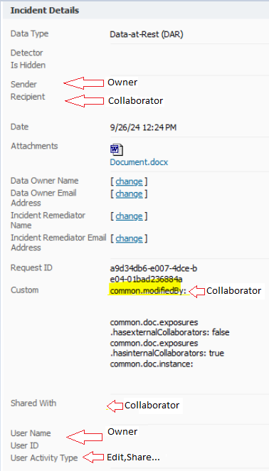 CloudSOC release 3.173 date: September 10, 2024 for the EU and September 12, 20024 for the US now includes attribute common.modifiedBy. For new incidents created after the 3.173 release date, the attribute will record the user that modified the document. Previously CloudSOC \ DLP was only able to report the owner as the violator.
