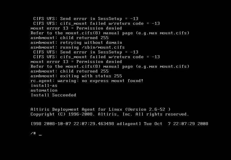 Linux boot does not authenticate. The error states, "No access smb mount: rc.agent warning no express mount found."