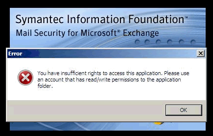 When you try to open the console for Symantec Mail Security for Microsoft Exchange (SMSMSE) you get the error "You have insufficient rights to access this application."