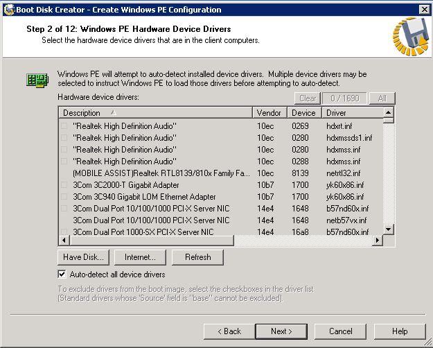 7. Click Next on Step 2 of 12: Windows PE Hardware Device Drivers: