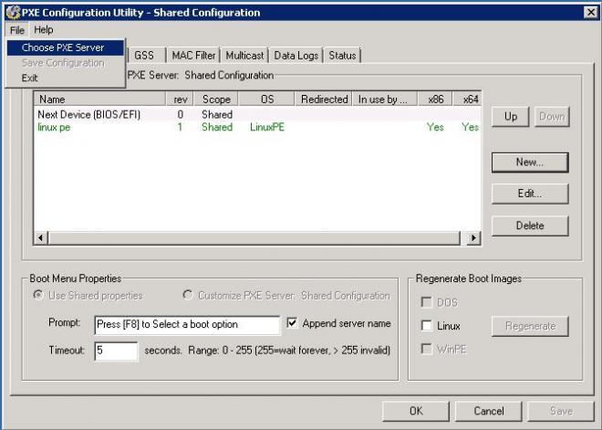 2. The PXE Configuration Utility will launch. Click File > Choose PXE Server: