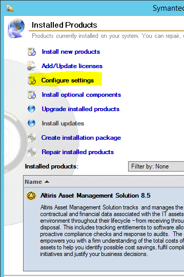 Open SIM (Symantec Installation Manager) and go to "Configure settings".