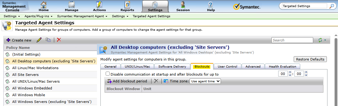 Answer: Blockouts can be controlled centrally in the client policies and the SMP side blockout period is stored the same way as agent side blockouts – in the registry and again these survive any logoff/shut down/ hibernation etc events.