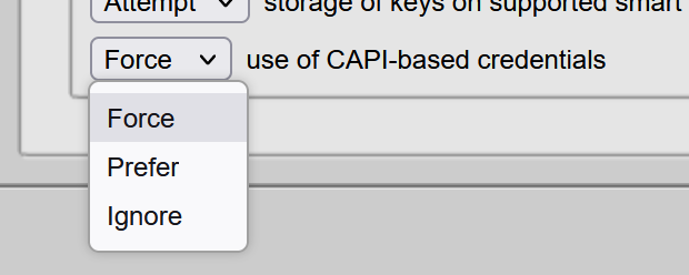 *In the Certificate tab in the Keys option, select in the dropdown after "Import X.509 certificates as:" "PGP Bundle keys" and dropdown select "Attempt" storage of keys on supported smartcards.