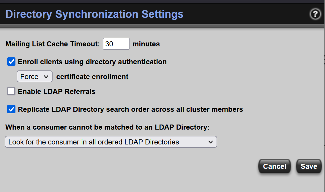 *Certificate Enrollment must be enabled on the PGP server under Consumers > Directory Synchronization: