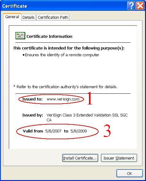 - The dates on the Certificates need to be in the time frame specified in the certificate. This can be seen by looking at the General tab of the certificate. See screenshot below.