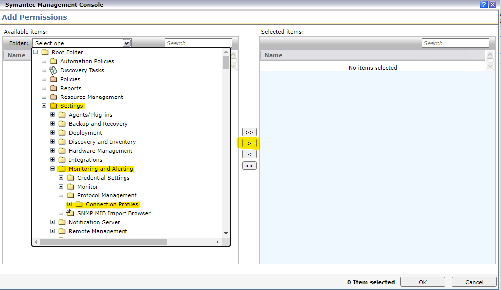 Grant all non-inherited permissions to the Manage Connection Profiles item: