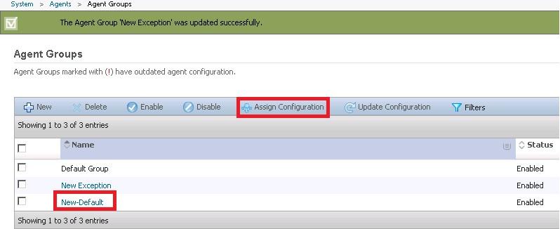 3. Select the new agent group > click Assign Configuration > select Default Configuration and click Ok