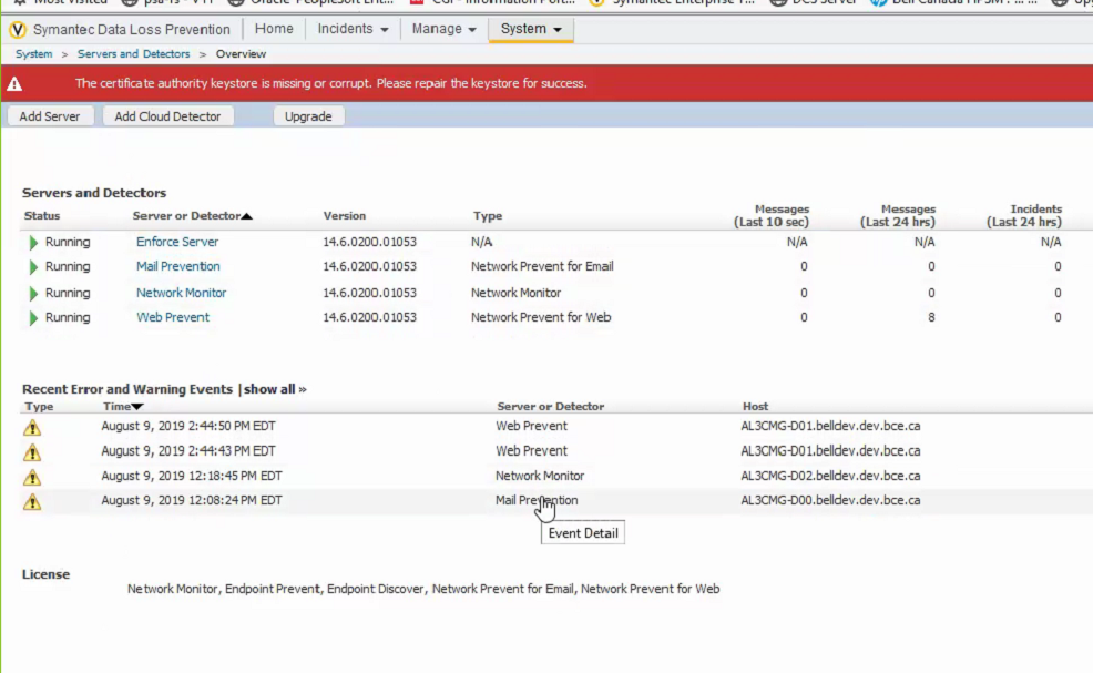 Delete all certificates from the ..Installationpath/protect/keystore and restart the Vontu monitor controller.