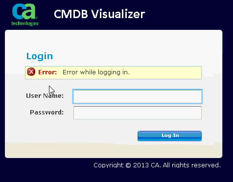 When clicking on the Visualizer button from the detail page of a Configuration Item (CI), you receive a logon prompt and the following error message: