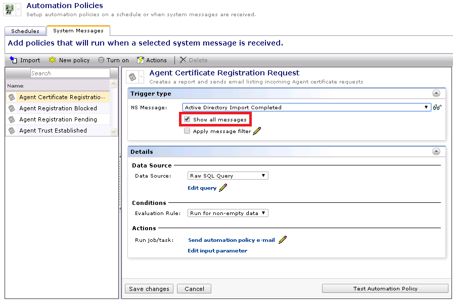 Some of the SMP automation policies run when a specific system message is received. Applying the filter to the system messages lets you trigger the automation policy only if it receives a message that matches to the rule(s) that you specify.