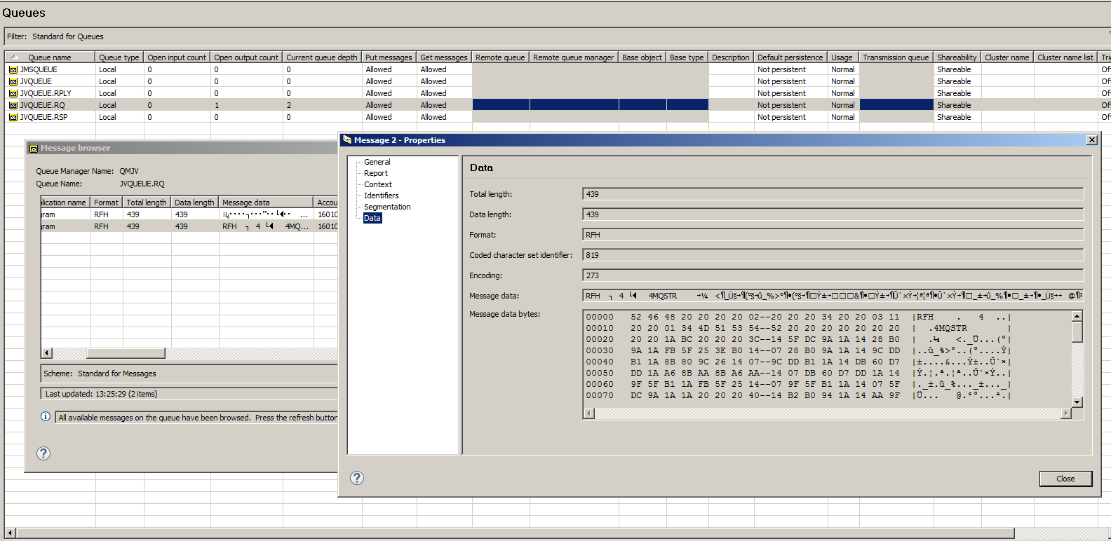 Sending this message will result in an RFH message as shown in MQ Explorer.