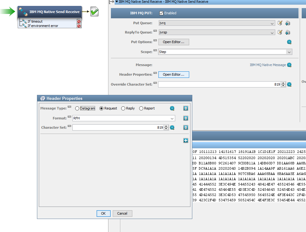 Also configure the Header Properties with Format: RFH and the correct Character Set