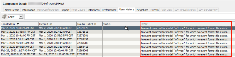 This has been seen with some UIM alarms but can happen for any alarms whose events are not being archived.