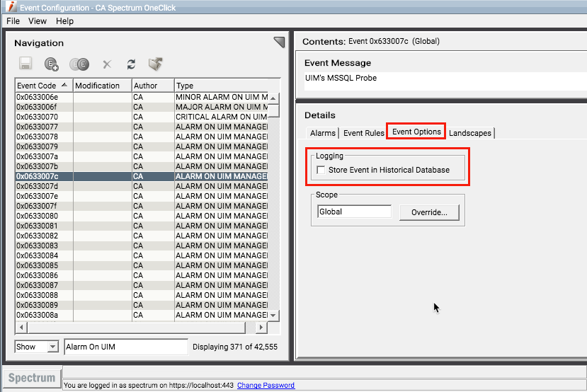 If enabling the Store Event option for a large number of events, make sure to check the impact this has on the event table in the ddmdb and the event table in OneClick's SRM database (table size/disk usage)