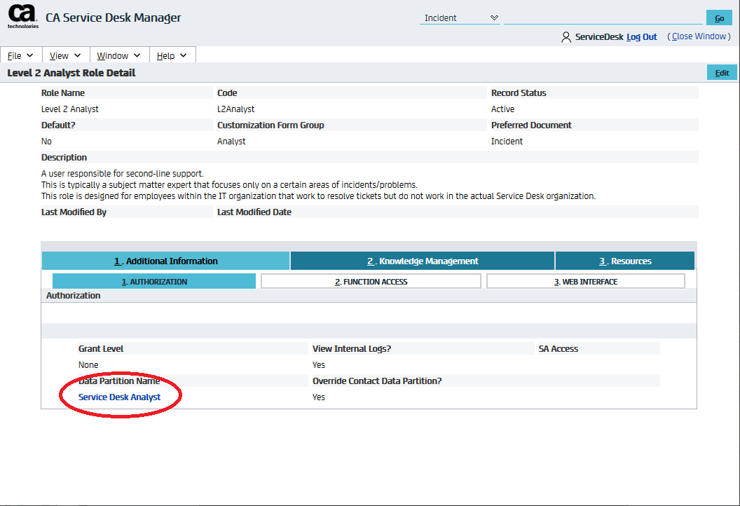 On the Data Partition Name, choose the listed "Service Desk Analyst" data partition