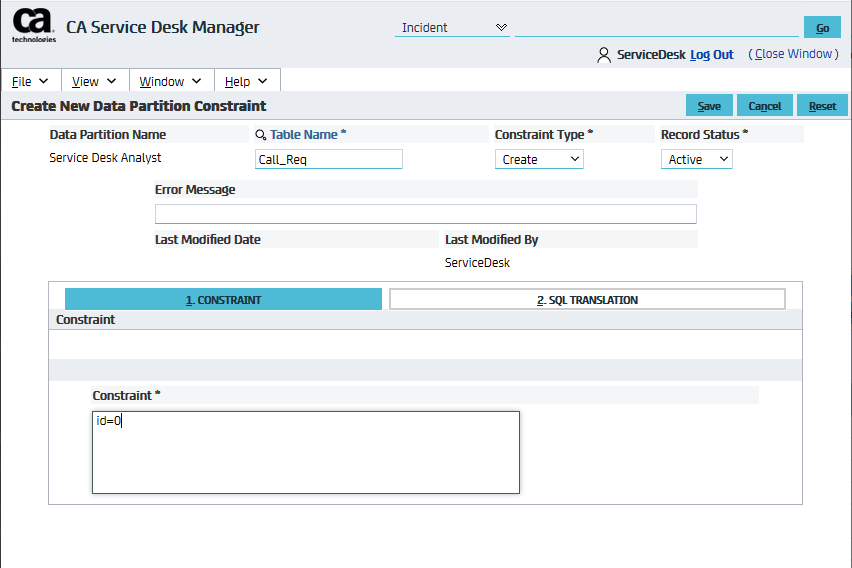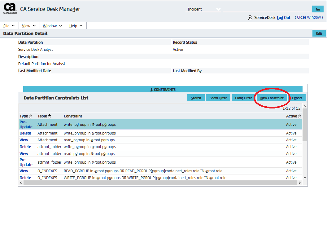 Save the Data Partition Constraint, then close the "Service Desk Analyst" Data Partition Detail window.