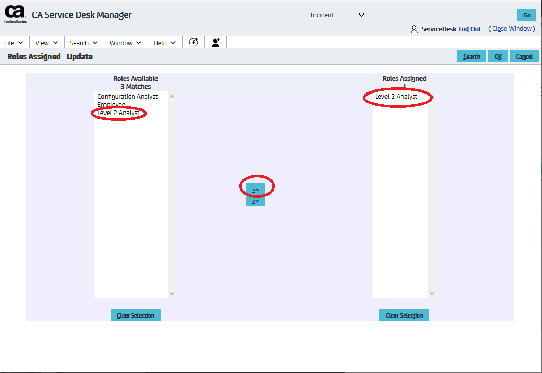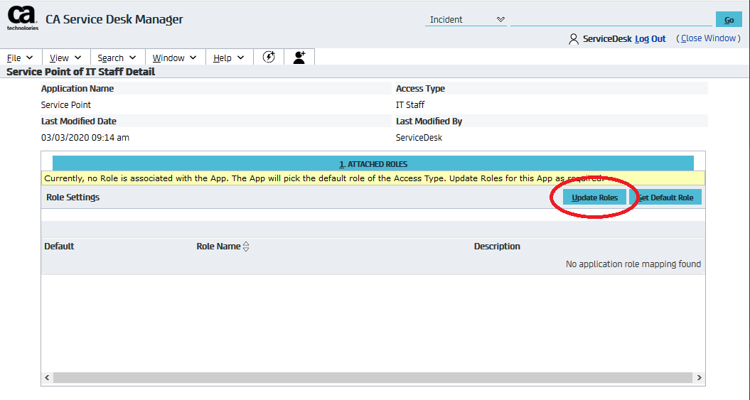 On the "Service Point of IT Staff Detail" window, choose "Update Roles"