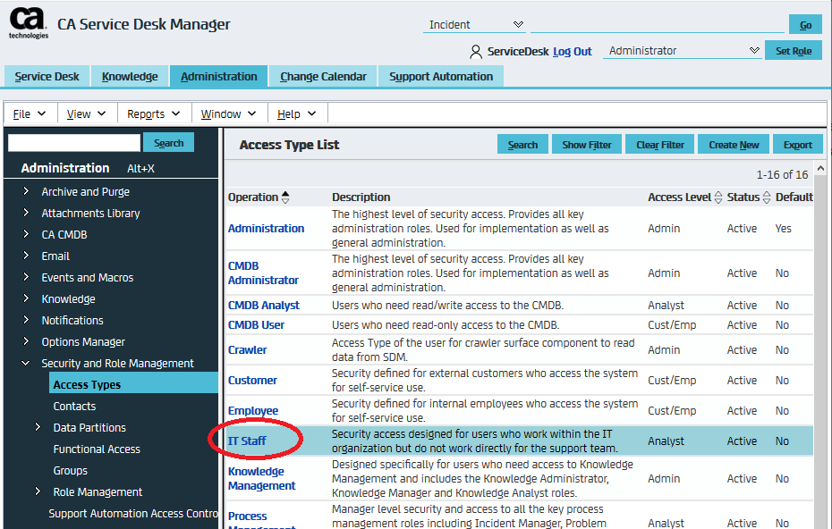 Locate the Access Type that needs to have this change take place, in this case, "IT Staff".