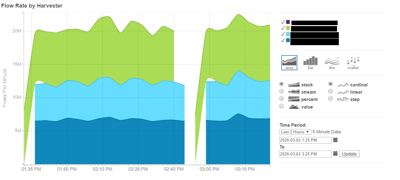 Find the harvester server which is down / offline and get its services started up. Flow Statistics data should start showing back up properly.