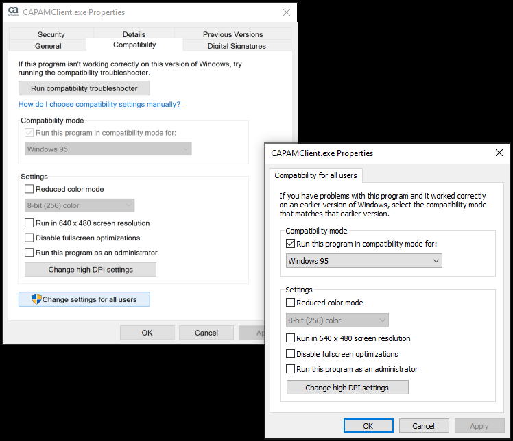 - You can go into the properties of our executable and click "Change settings for all users" -> than click "Run this program as an administrator"