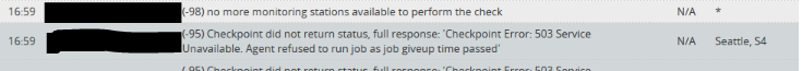 We issue a check to the first monitoring station in your selection, if we get any type of error back stating "station not available" meaning that it could not connect to the monitoring station itself to perform the check. Basically a response as if the server is down or network issue or something like that. We immediately issue a second check to the next monitoring station in your list, if we get the same response back or if you do not have any more stations in your list for your monitor, then we issue the error "no more monitoring stations available to perform the check".