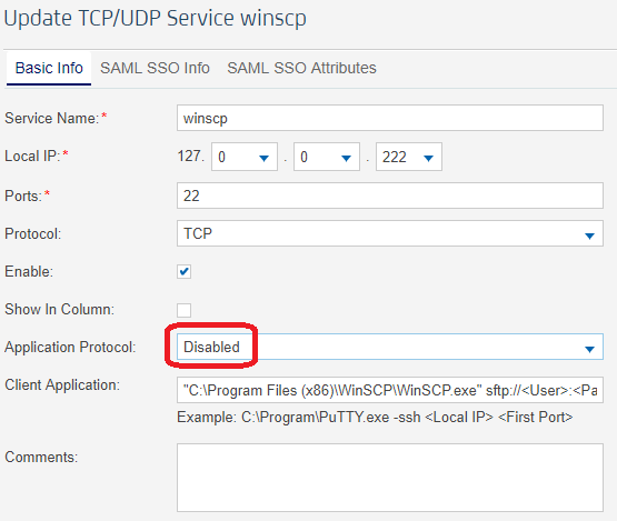 This issue is caused when "TELNET" is selected as Application Protocol.