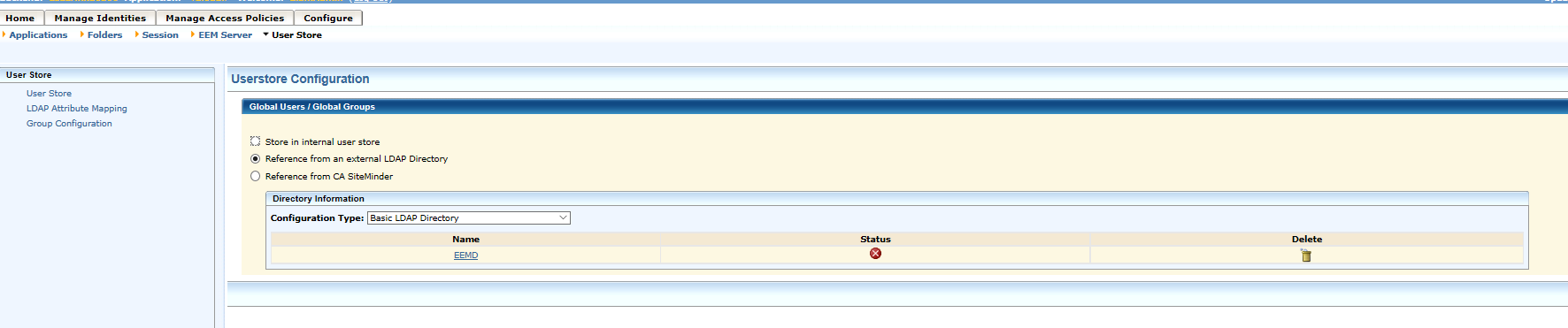 https://techdocs.broadcom.com/content/broadcom/techdocs/us/en/ca-enterprise-software/layer7-identity-and-access-management/ca-embedded-entitlements-manager/12-6/configuring/ca-eem-server-user-stores-configuration/reference-from-an-external-ldap-directory/add-an-external-ldap-directory.html