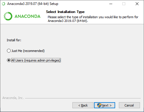 - Download the Anaconda3-2019.07-Windows-x86_64.exe binary. Download location here.