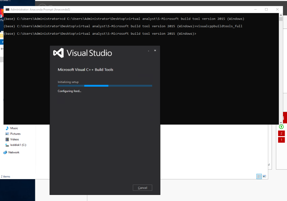 - CD to the location where visualcppbuildtools_full.exe was downloaded.