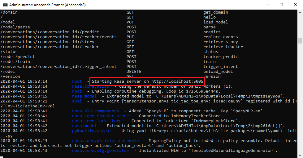 - In the Anaconda Prompt, make sure you are running the "botenv" environment in Anaconda.