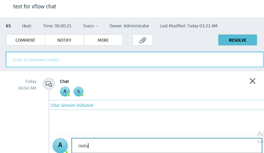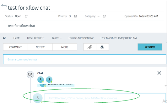Xflow chat is not working as the chat text bar gets grayed out between assignee and enduser. The user cannot see the chat message or could reply back.