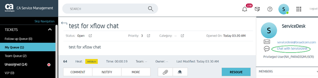 Login to xflow as ServiceDesk and also in another browser as Administrator.