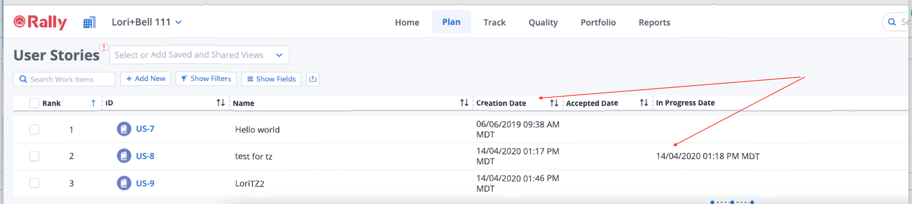 Rally: Times displayed on date fields do not display the default timezone for the workspace when viewing artifacts