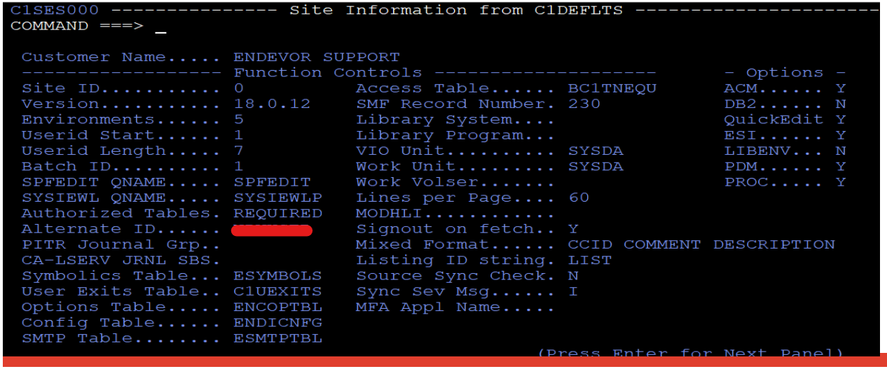 Is there a way to determine what release of Endevor and options a site is running thru the foreground panels