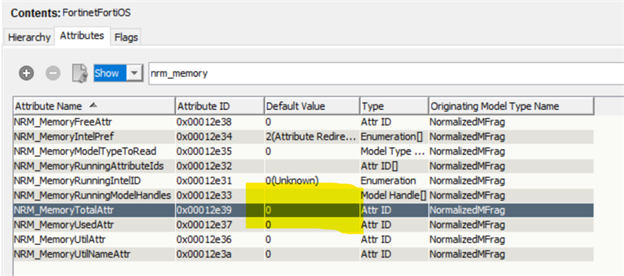 Select NRM_MemoryTotalAttr, If you observe the default value it is set to 0