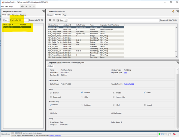 Enter FortinetFortiOS on the left side filter then select ModelType FortinetFortiOS