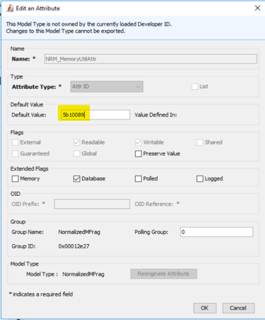 Select NRM_MemoryUtilAttr, If you observe the default value it is set to 0