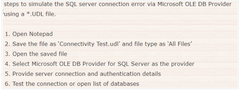 We are getting the below error while testing the connection to different databases remotely, from the sqlserver probe: