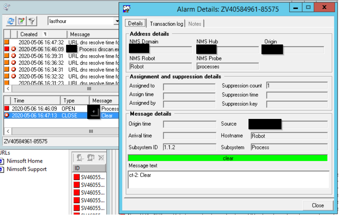 For those probes that send an alarm clear when the condition is passed the alarm clear message is generated and immediately goes to Historical and never shows up in the open alarm window.