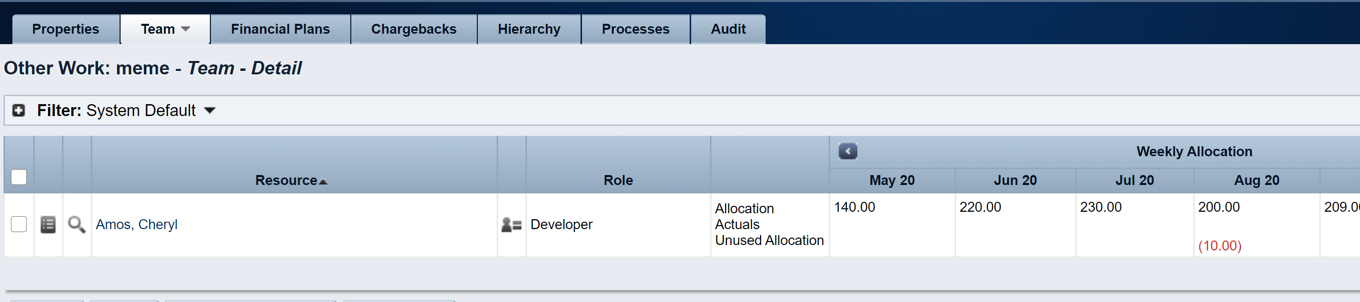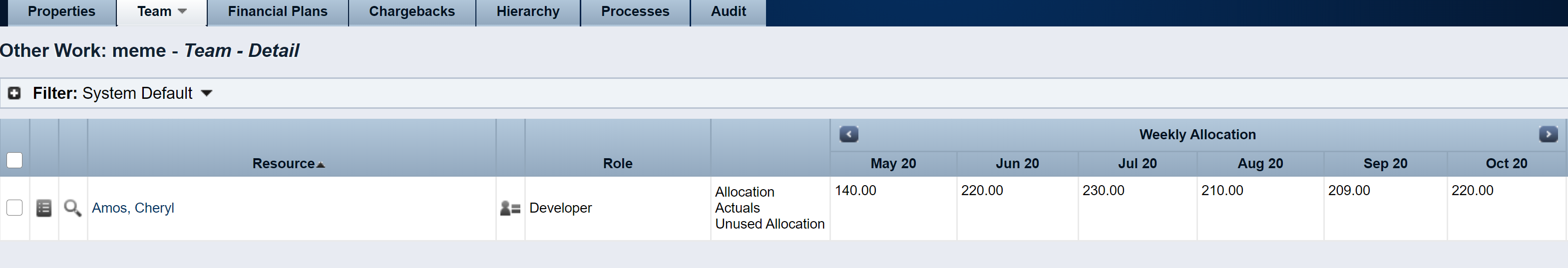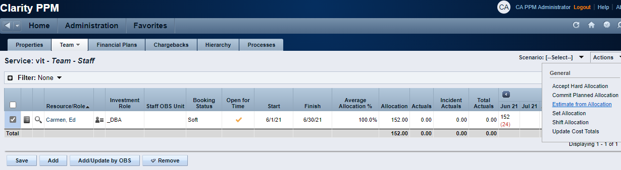 Go to the investment team tab, select the affected team member and run the Estimate from Allocation action