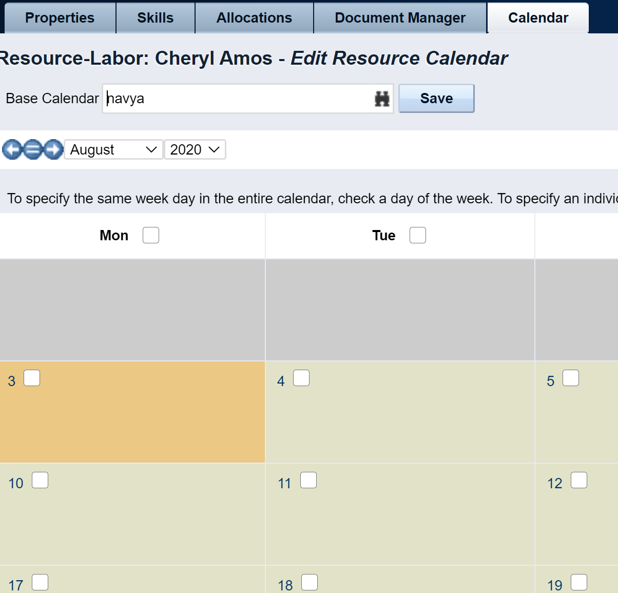 Select the calendar the resources are linked to.