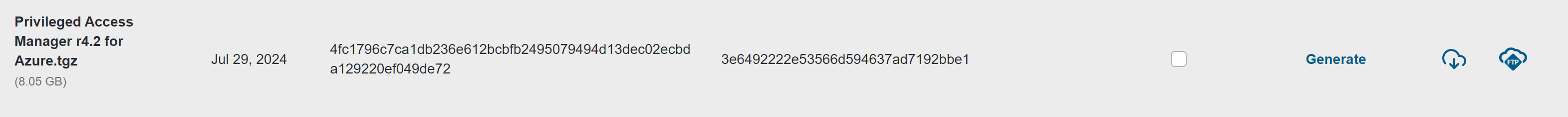 6- In the next displayed page, find "Privileged Access Manager r4.2 for Azure.tgz" item and click the download icon