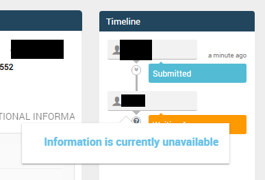 When a user's mouse pointer hovers over "YOU" in the CA Identity Manager (IM) Identity Portal (IP) Approver timeline, the message "Information is currently unavailable" appears (see screenshot below).