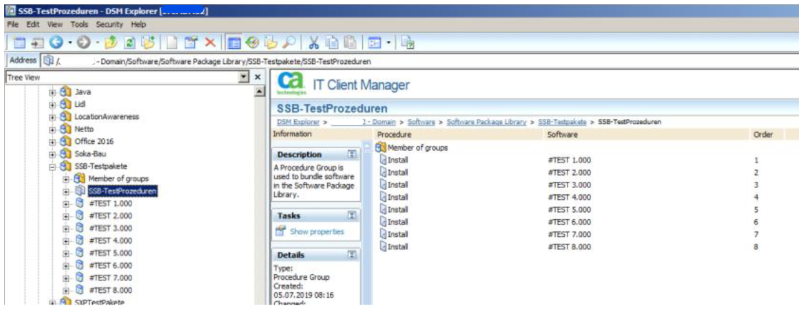 On domain manager create a test package procedure group . For Example you can see procedure group with 1-8