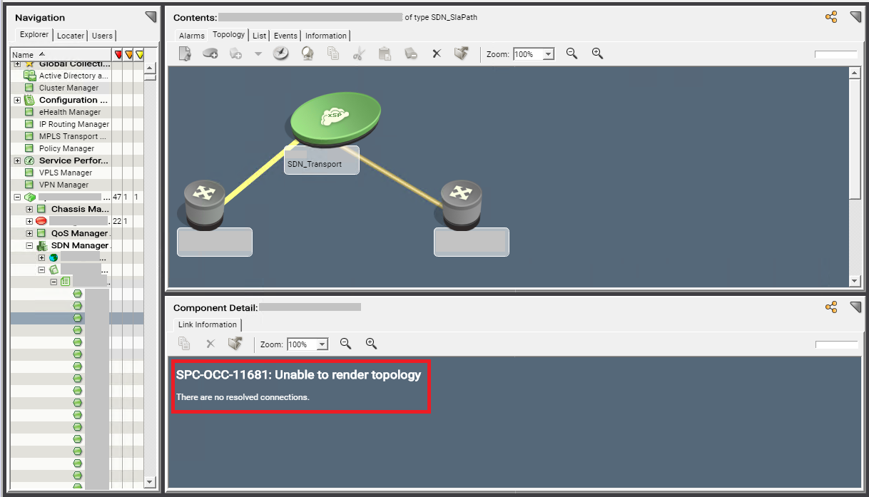 For all the Topology views under SDN Manager, specifically SDN_SlaPath, the nex message is seen when selecting a Link pipe: SPC-OCC-11681: Unable to render topology