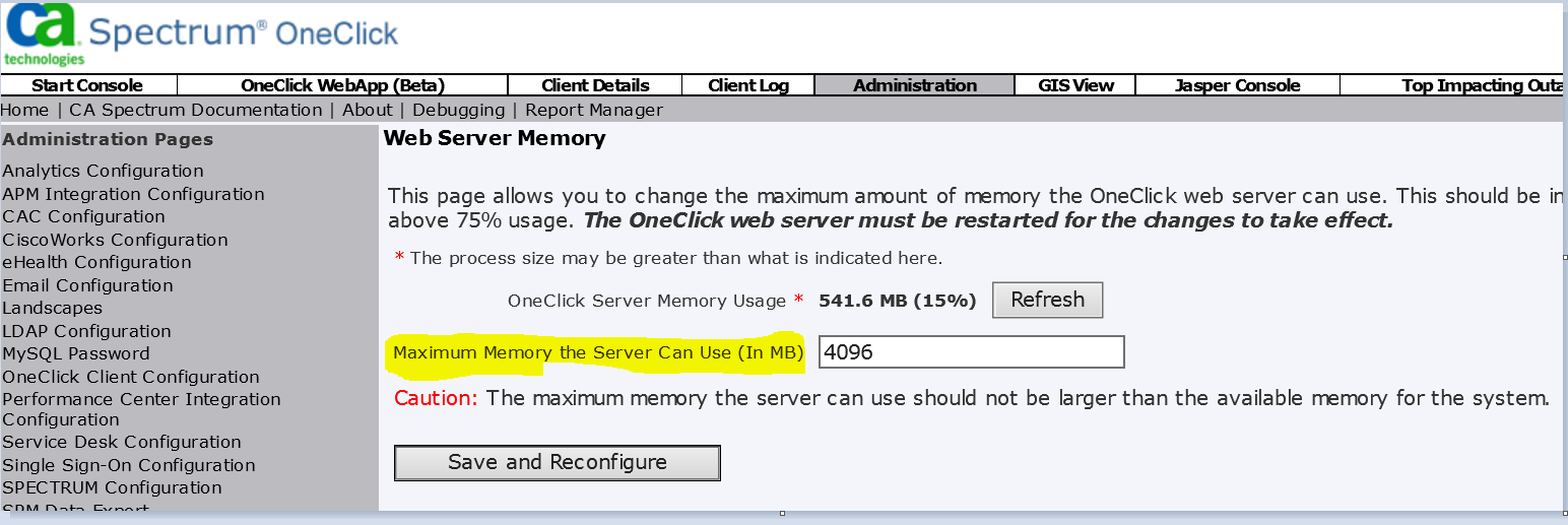 > Open OC Admin page, Administrator > Web Server Memory > Check how much has been assigned.