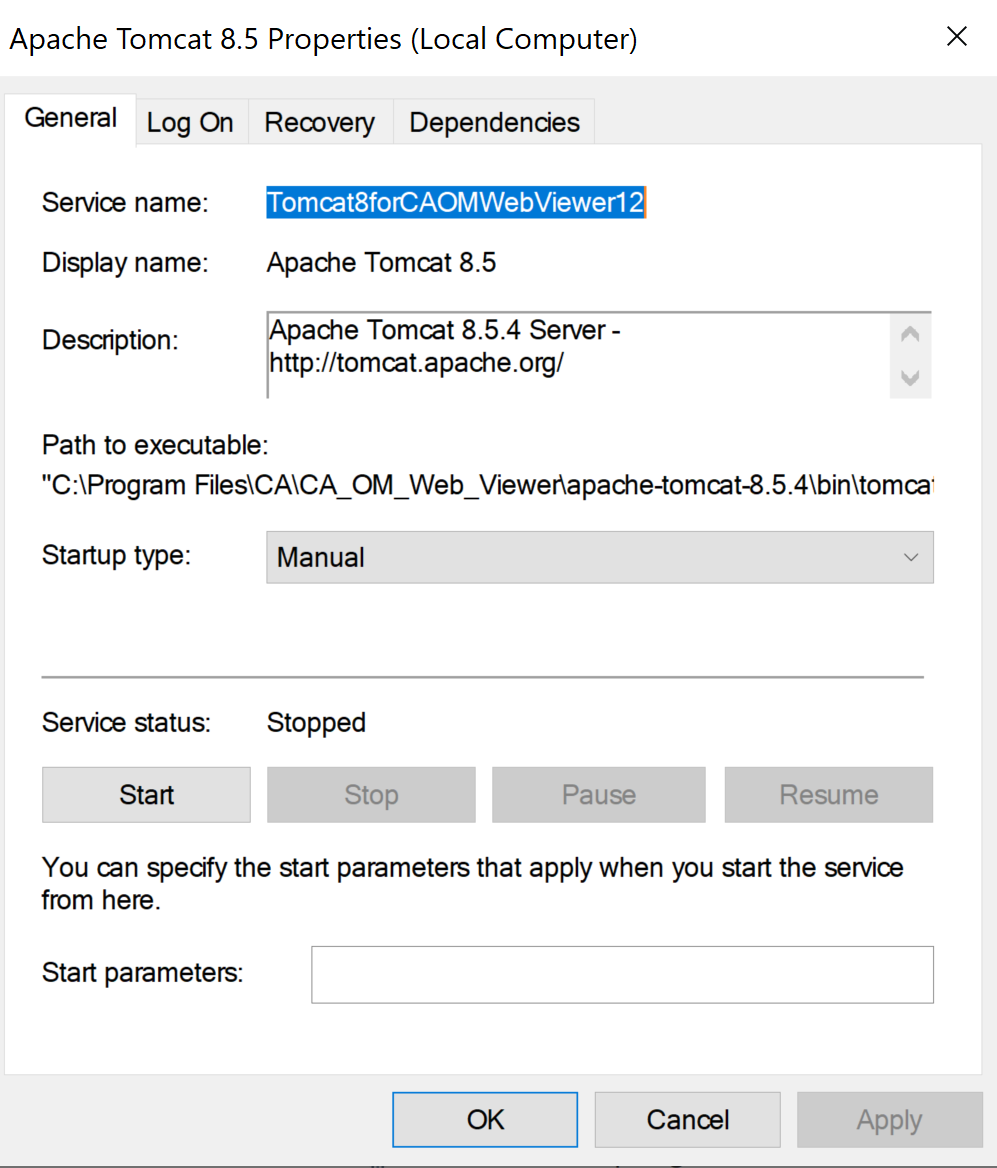 - Go to the C:\Program Files\CA\CA_OM_Web_Viewer\apache-tomcat-8.5.4\bin directory