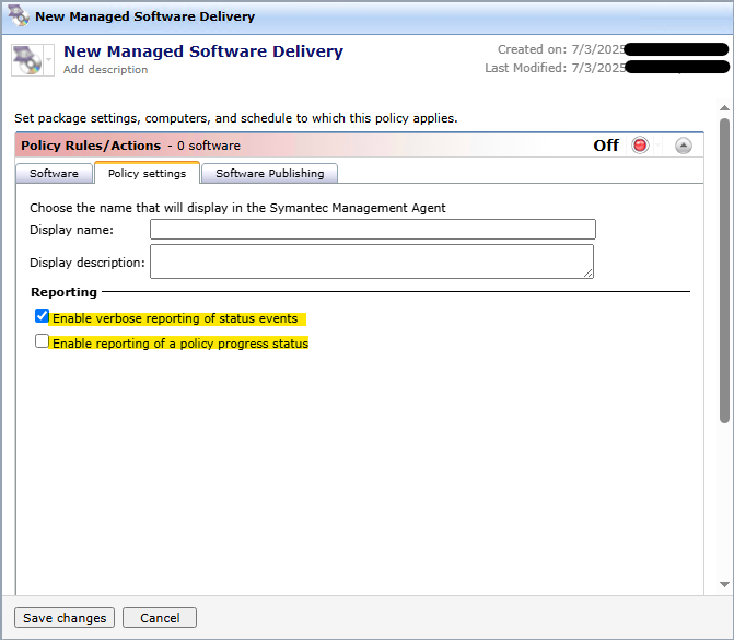 In each policy for Managed Software Delivery, under the Policy settings tab, there is a reporting section. What are these used for?
