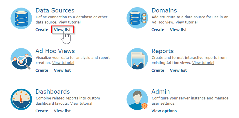 3. Right-click on spectrum_domain_ds (for Ad Hoc Reports) and select Edit. Do the same for spectrum_ds (for canned reports):